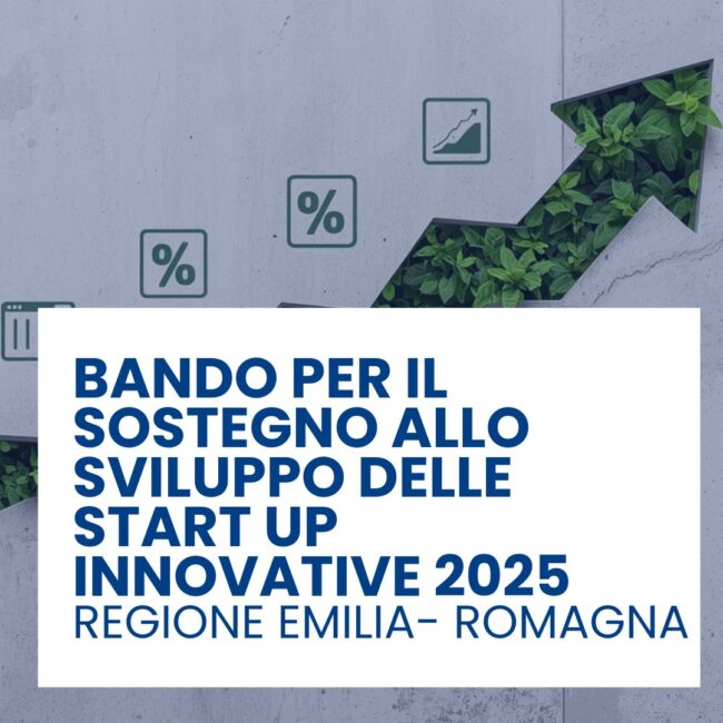 BANDO PER IL SOSTEGNO ALLO SVILUPPO DELLE STARTUP INNOVATIVE 2025Regione Emilia-Romagna – PR-FESR 2021-2027 – Azione 1.1.5 Obiettivi del bando: Il bando sostiene lo sviluppo e il consolidamento delle startup innovative sul territorio regionale, finanziando investimenti connessi a risultati di ricerca e nuovi prodotti innovativi. L’iniziativa promuove l’intera catena del valore: dall’idea generation, all’accelerazione, fino…
