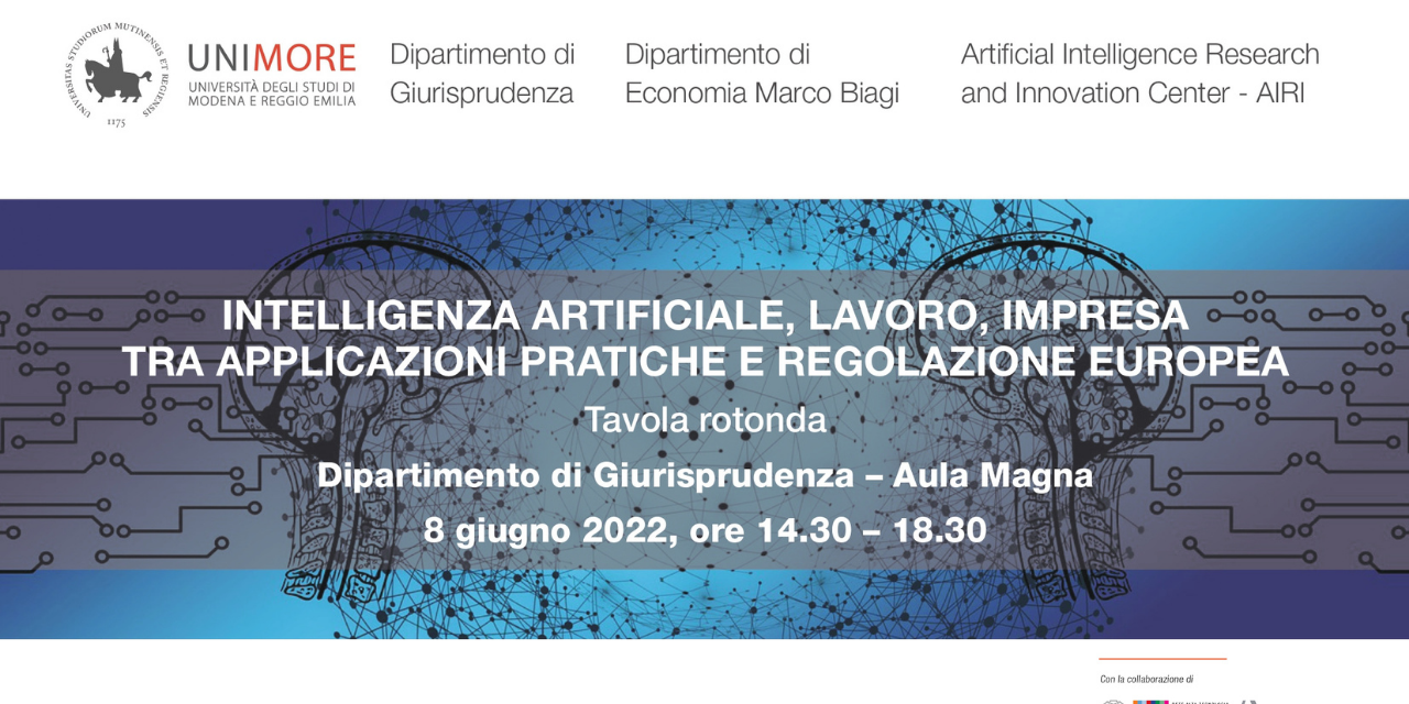 L’iniziativa, promossa da AIRI Artificial Intelligence Research and Innovation Center, dal Dip. di Economia Marco Biagi e dal Dip. di Giurisprudenza di Unimore, in collaborazione con il Tecnopolo di Modena, affronterà il tema dell’AI e del rapporto con Lavoro e Impresa tra applicazioni pratiche e regolazione europea.