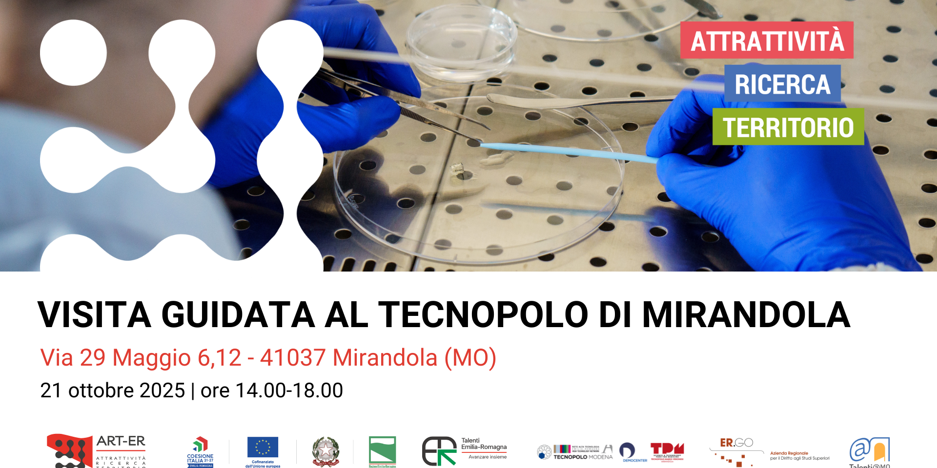 Ti invitiamo a partecipare a una visita guidata al Tecnopolo di Mirandola (TPM) “Mario Veronesi”, organizzata da ART-ER ed ER.GO in collaborazione con Fondazione Democenter e Talenti@MO.